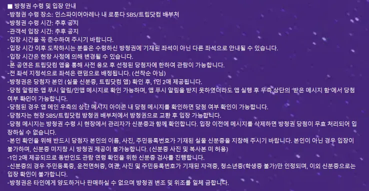 2023 SBS 가요대전 티켓팅 방청을 통해, 현장감이 넘치는 무대와 함께하시길 바랍니다.